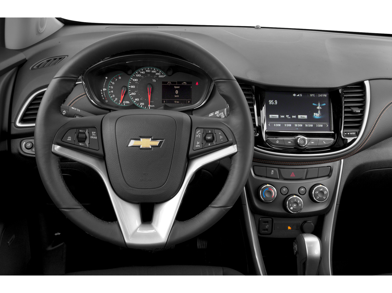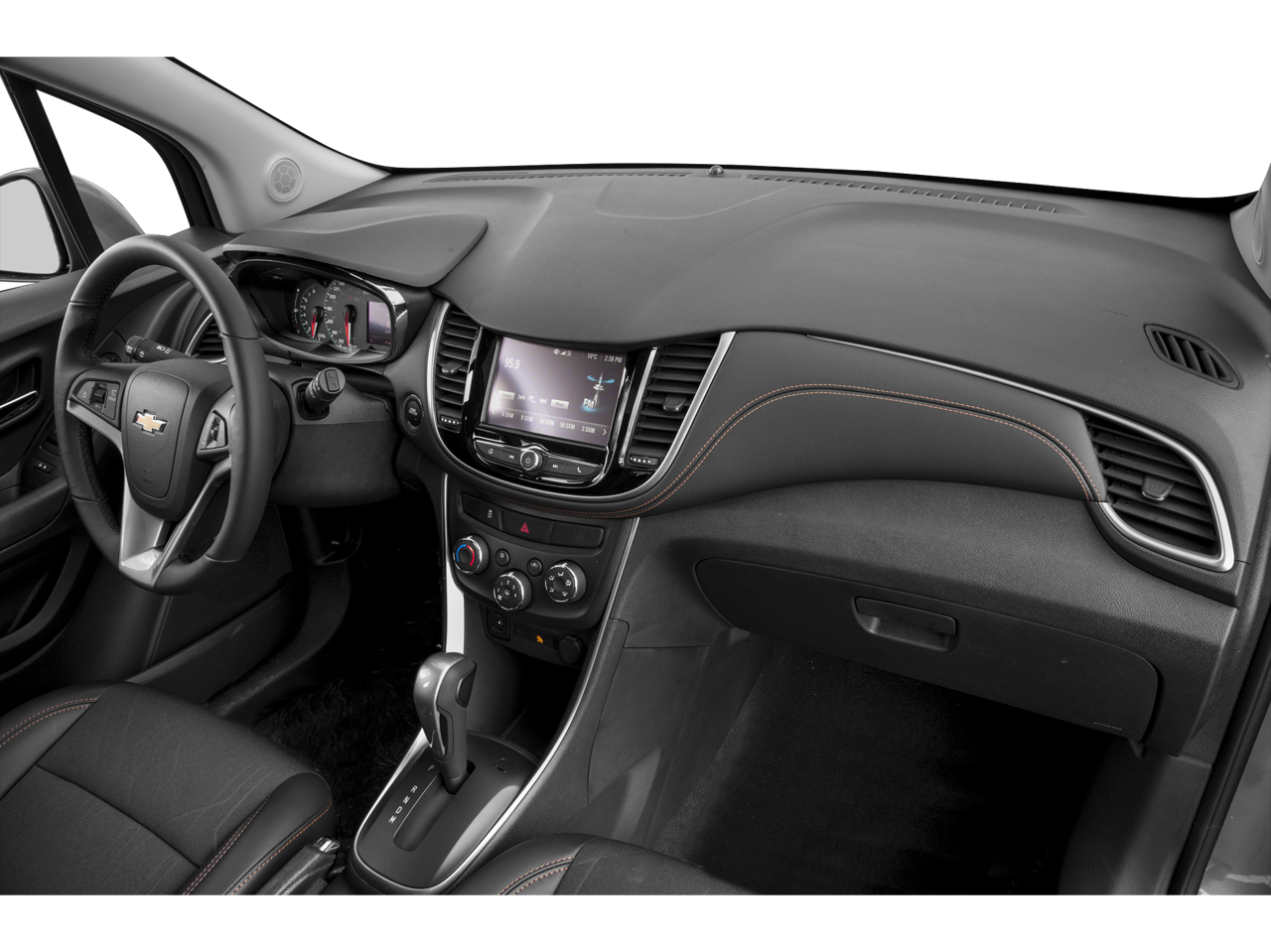WHEELS, 16" (40.6 CM) ALUMINUM (STD), TRANSMISSION, 6-SPEED AUTOMATIC (STD), TIRES, P205/70R16 ALL-SEASON, BLACKWALL, STEERING WHEEL, LEATHER-WRAPPED 3-SPOKE, SILVER ICE METALLIC, SEATS, FRONT BUCKET WITH DRIVER POWER LUMBAR (STD), SEAT TRIM, DELUXE CLOTH/LEATHERETTE, SEAT ADJUSTER, DRIVER 6-WAY POWER, LT PREFERRED EQUIPMENT GROUP Includes Standard Equipment, LT CONVENIENCE PACKAGE includes (AVJ) Keyless Open, (BTM) Keyless Start, (5H1) Key System, (AG9) driver 6-way power seat adjuster, (N34) leather-wrapped 3-spoke steering wheel, (EGI) Deluxe Cloth/leatherette seat trim and (D7A) body-color door handles with chrome accents. This Chevrolet Trax has a dependable Turbocharged Gas 4-Cyl 1.4L/83 engine powering this Automatic transmission.