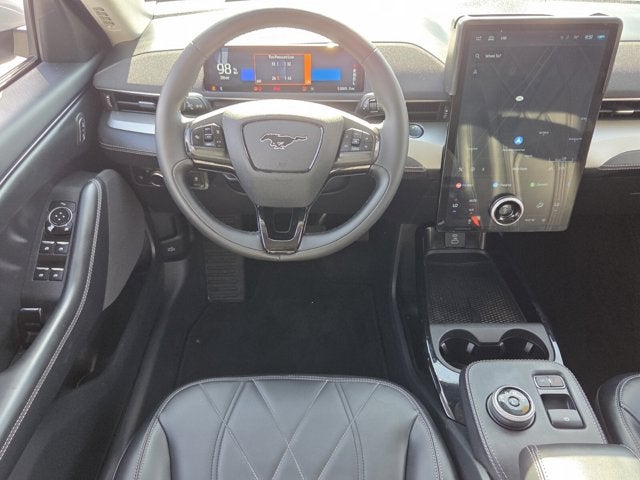 Voice Activated Dual Zone Front Automatic Air Conditioning, Valet Function, Trip Computer, Transmission: Single Speed, Transmission w/Driver Selectable Mode and Oil Cooler, Tracker System, Tire Specific Low Tire Pressure Warning, Tire Mobility Kit, Tailgate/Rear Door Lock Included w/Power Door Locks, SYNC 4A w/Enhanced Voice Recognition -inc: 15.5" LCD capacitive touchscreen w/swipe capability, wireless phone connection, cloud connected, AppLink w/app catalog, 911 assist, wireless Apple CarPlay and Android Auto compatibility, digital owner's manual, adaptive dashcards, personal profiles and conversational voice command recognition. This Ford Mustang Mach-E has a dependable Electric engine powering this Automatic transmission.