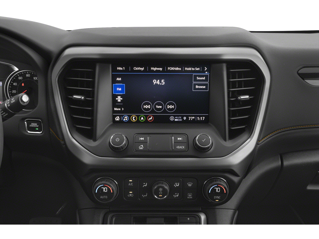 SEATING, 6-PASSENGER (2-2-2 SEATING CONFIGURATION) with 2nd row flat-folding captain's chairs with Smart Slide and 3rd row manual-folding 50/50 split-bench seat (STD), NOT EQUIPPED WITH FRONT AND REAR PARK ASSIST, SEE DEALER FOR DETAILS (Beginning with production starting on May 1, 2023, certain vehicles will be forced to include (060) Not Equipped with Front and Rear Park Assist, which removes Front and Rear Park Assist. See the window label for the features on a specific vehicle.), JET BLACK, PREMIUM CLOTH SEAT TRIM, ENGINE, 3.6L V6, SIDI, DOHC with Variable Valve Timing (VVT) (310 hp [231.1 kW] @ 6600 rpm, 271 lb-ft of torque [365.9 N-m]) @ 5000 rpm (STD), AXLE, 3.49 FINAL DRIVE RATIO, AUDIO SYSTEM, 8" DIAGONAL GMC INFOTAINMENT SYSTEM WITH NAVIGATION includes multi-touch display, AM/FM/SiriusXM stereo, Bluetooth® streaming audio for music and most phones, Android Auto and Apple CarPlay capability for compatible phones, advanced voice recognition, in-vehicle apps, personalized profiles for infotainment and vehicle settings (STD), AT4 PREFERRED EQUIPMENT GROUP includes standard equipment, Wireless Apple CarPlay/Wireless Android Auto, Wipers, front intermittent with washers, Wiper, rear intermittent with washer.