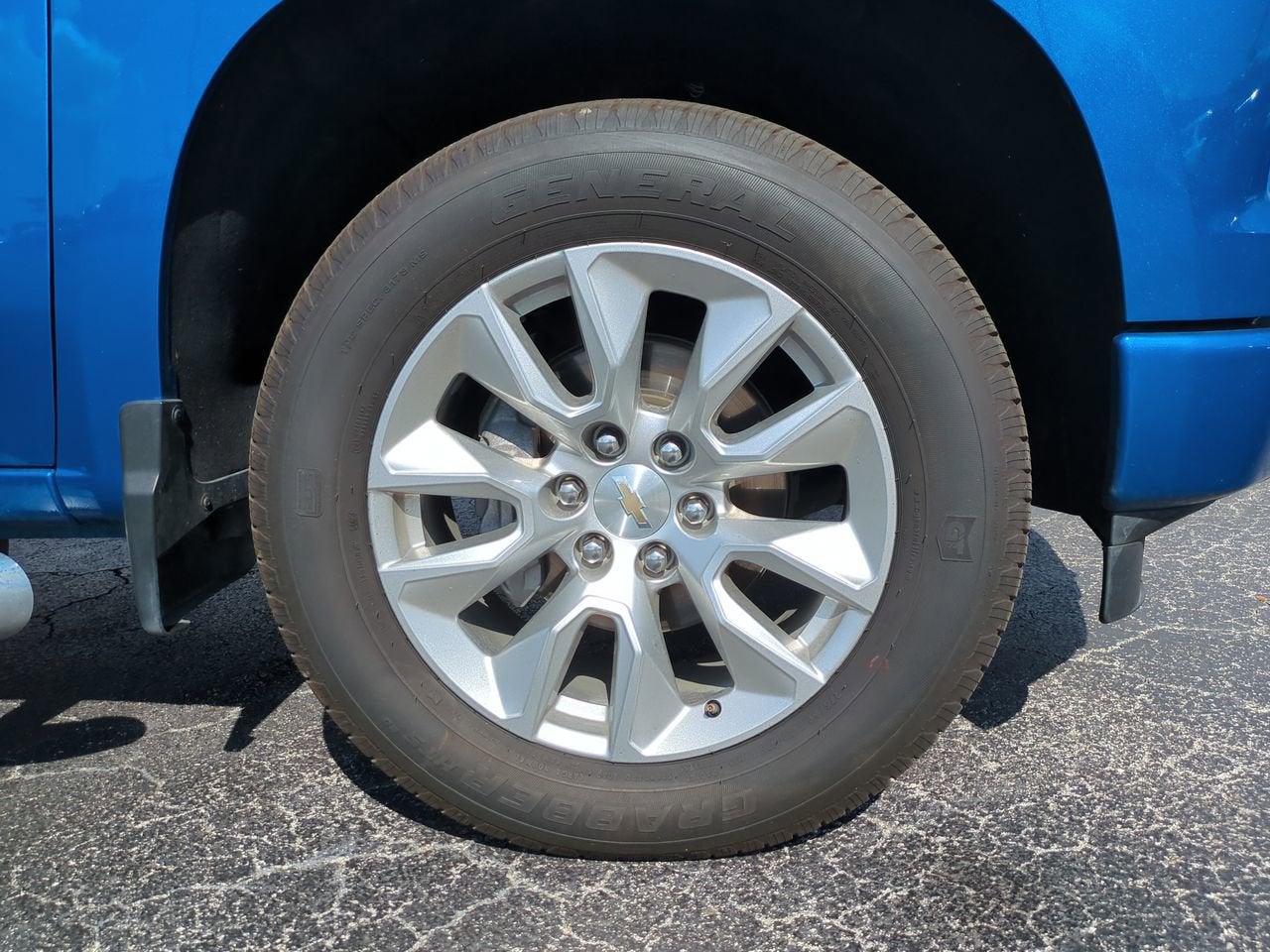 WHEELS, 20" X 9" (50.8 CM X 22.9 CM) BRIGHT SILVER PAINTED ALUMINUM (STD), TRANSMISSION, 8-SPEED AUTOMATIC, ELECTRONICALLY CONTROLLED with overdrive and tow/haul mode. Includes Cruise Grade Braking and Powertrain Grade Braking (STD), TIRES, 275/60R20 ALL-SEASON, BLACKWALL (STD), STEERING COLUMN LOCK, ELECTRICAL, SEATS, FRONT 40/20/40 SPLIT-BENCH with covered armrest storage and under-seat storage (lockable) (STD), REAR AXLE, 3.42 RATIO, LPO, ASSIST STEPS - 4" CHROMED ROUND (dealer-installed), LICENSE PLATE KIT, FRONT, JET BLACK, CLOTH SEAT TRIM, GLACIER BLUE METALLIC. This Chevrolet Silverado 1500 has a strong Turbocharged Gas I4 2.7L/166 engine powering this Automatic transmission.