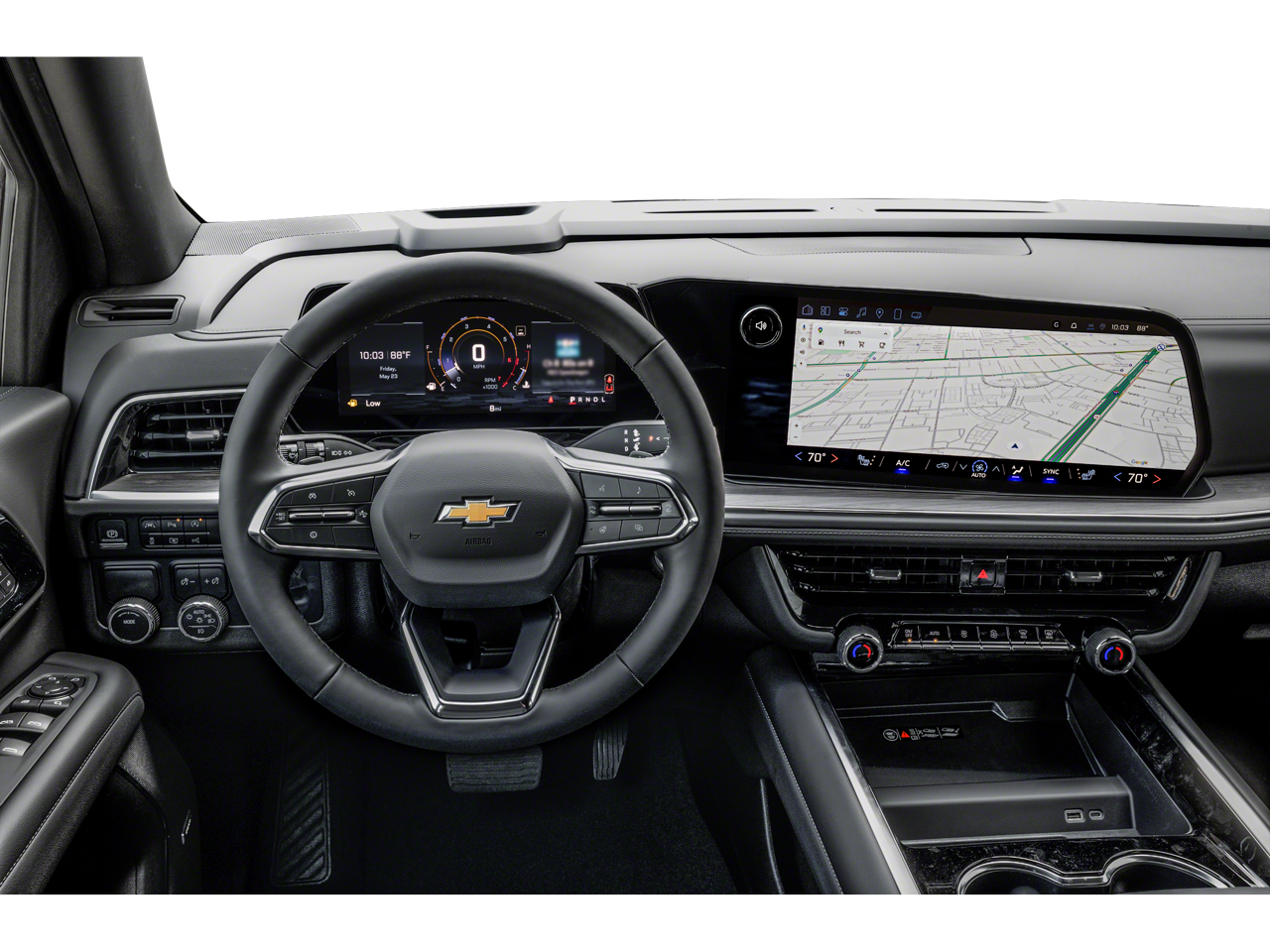 REAR AXLE, 3.23 RATIO, MIRRORS, OUTSIDE HEATED POWER-ADJUSTABLE, POWER-FOLDING, DRIVER-SIDE AUTO-DIMMING integrated turn signal indicators and puddle lighting, MIRROR, INSIDE REARVIEW AUTO-DIMMING, LT PREFERRED EQUIPMENT GROUP includes standard equipment, HITCH VIEW with image adjustment, Pan/Zoom, GVWR, 7600 LBS. (3447 KG), FOG LAMPS, FRONT LED, ENGINE, 5.3L ECOTEC3 V8 with Dynamic Fuel Management, Direct Injection and Variable Valve Timing, includes aluminum block construction (355 hp [265 kW] @ 5600 rpm, 383 lb-ft of torque [518 Nm] @ 4100 rpm) (STD), COOLING SYSTEM, EXTRA CAPACITY, BLIND ZONE STEERING ASSIST WITH TRAILERING, BLACK, AUDIO SYSTEM, 17.7" DIAGONAL ADVANCED COLOR LCD DISPLAY with Google built-in compatibility (select service plan required, terms and limitations apply), including navigation capability, connected apps, personalized profiles for each driver's settings, Natural Voice Recognition and Phone Integration (STD), Wireless Phone Charging, for portable devices, Wireless Apple CarPlay/Wireless Android Auto, Wipers, front intermittent, Rainsense, Wiper, rear intermittent with washer, Windshield, solar absorbing, Windows, power with rear Express-Down, Window, power with front passenger Express-Up/Down, Window, power with driver Express-Up/Down.